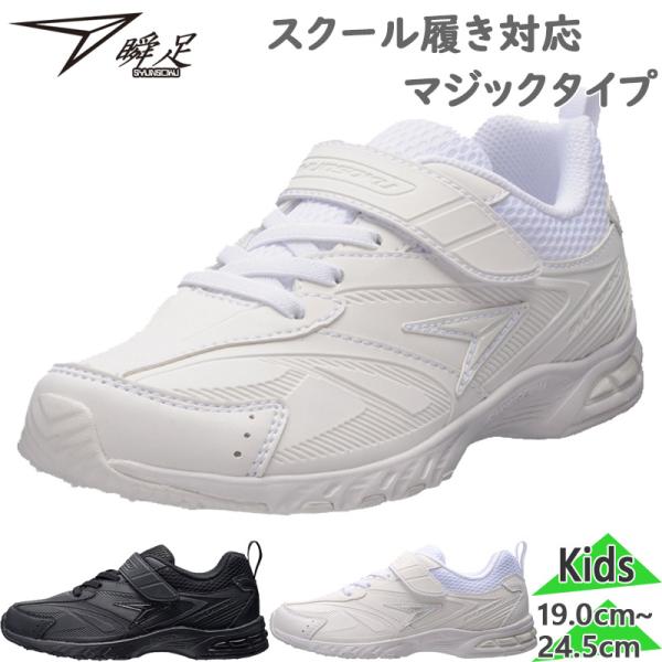 瞬足 ジュニア キッズ 男の子 女の子 靴 シューズ 白 白靴 通学 上履き 合皮 マジックテープ シュンソク SJJ0960
