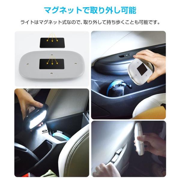 ● 操作はシンプルで、ライト部分を押すだけで瞬時に点灯します。ライトはマグネット式なので、取り外して持ち歩くことも可能です。