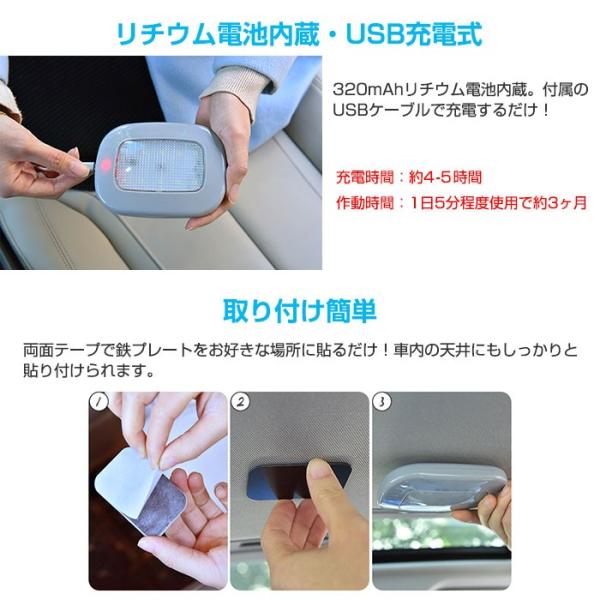 ルームランプ ルームライト 天井 車 LED おしゃれ 磁石 車載 車内 照明 マグネット式 USB充電式 室内 夜間