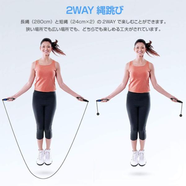 ● 長縄(280cmロープ)と短縄(24cm×2)の2Wayで楽しむことができます。