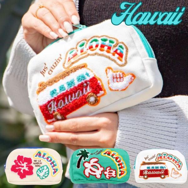 ポーチ かわいい ハワイアン雑貨 kahiko カヒコ アロハ バッグ 小物入れ コスメポーチ 化粧ポーチ コンパクト サガラ刺しゅう おしゃれ