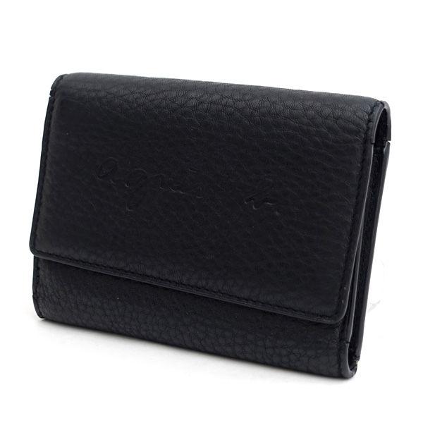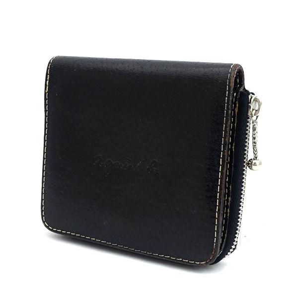 agnes b / アニエスベー コンパクト財布 フラップ レザー ブラック ブランド 中古