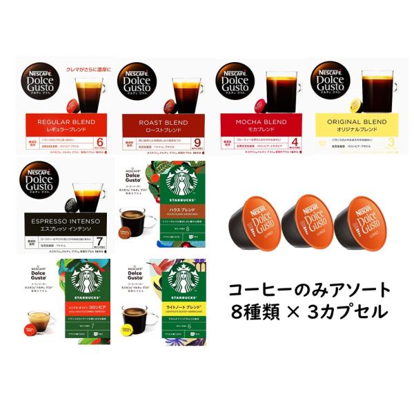 ドルチェグスト カプセル 24個セット(コーヒーのみ 8種x3個) ネスカフェ シェア パック アソート セット 飲み比べ ギフト お試し