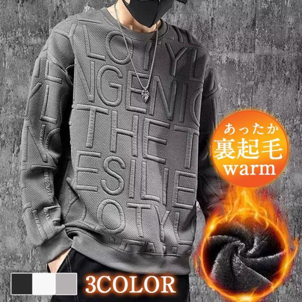トレーナー 裏起毛 メンズ プルオーバー 厚手 暖かい 防寒 パーカー 裏ボア おしゃれ スウェット トップス オーバーサイズ ゆったり 秋冬