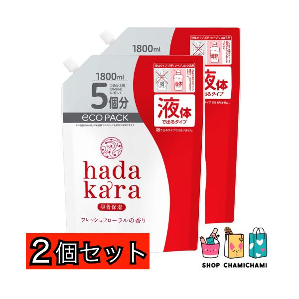 2個セット hadakara(ハダカラ) ボディーソープ 液体タイプ フレッシュフローラルの香り 詰め替え 大容量 1800ml