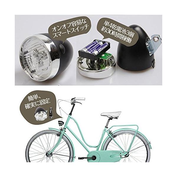 東川口商事 自転車 ヘッド ライト 砲弾型 3 LED レトロ クラシック デザイン 電池式 金具 付 (ブラック)