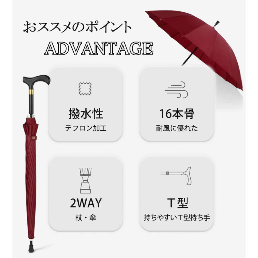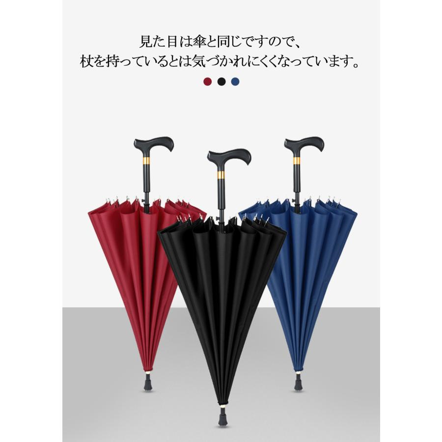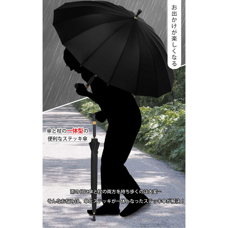 ステッキ傘 杖傘 長傘 一体型 ステッキアンブレラ 超大型 雨傘 撥水 耐強風 16本骨 ジャンプ傘 大判 晴雨兼用 梅雨対策 軽量 高級 無地 歩行補助 高齢者 祖父 父