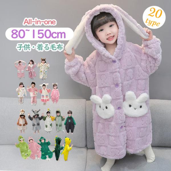ルームソックス1点プレゼント】着る毛布 キッズ 子供 冬用 暖かい あったか 女の子 男の子 パジャマ ナイトガウン ルームウェア もこもこ 厚手 ロンパース 長袖