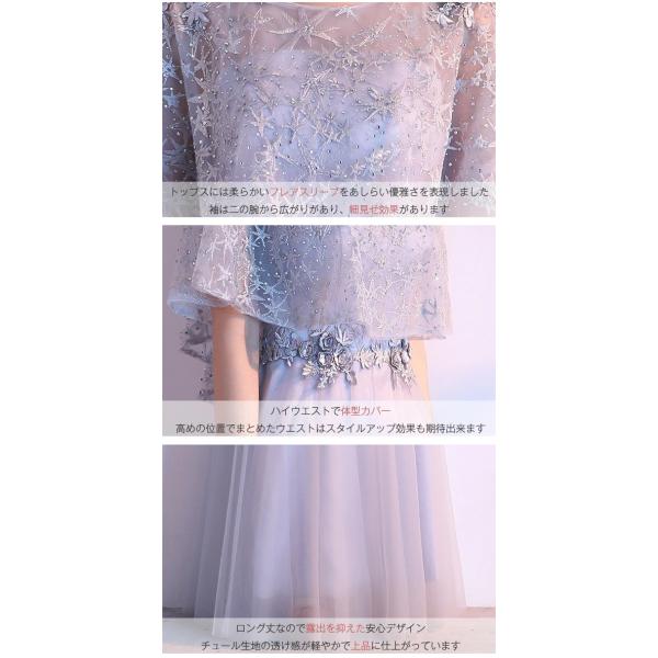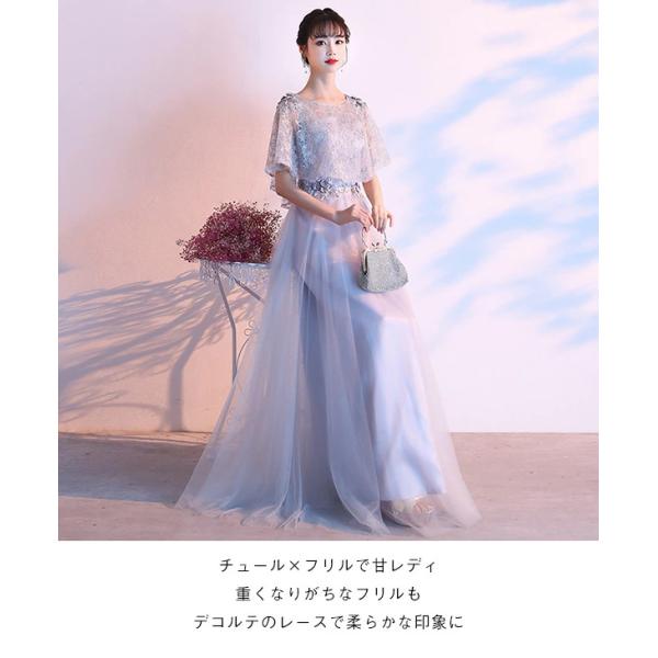 ドレス 大人 ピアノ 発表会 演奏会用ドレス ロングドレス パーティードレス 結婚式 ピアノ発表会 大きいサイズ 袖付き チュール レース フレア 二次会 母親 紺色