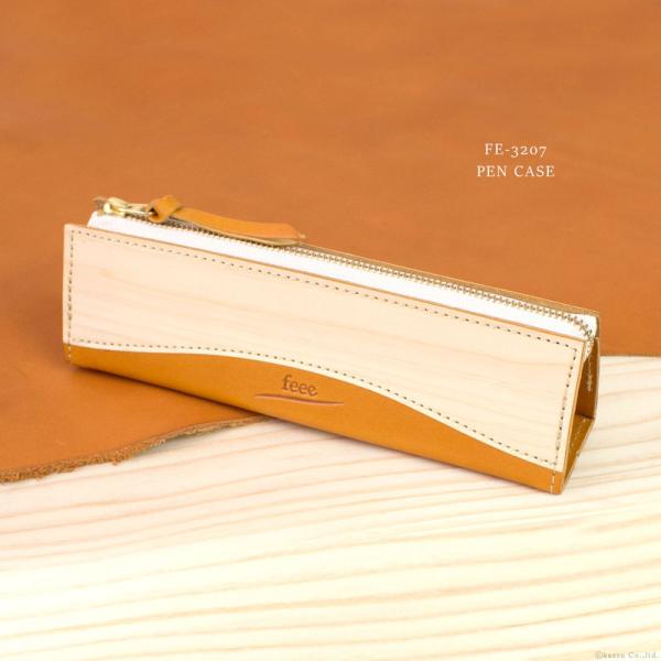 ペンケース 本革 天然木 木目 ナチュラル おしゃれ 文具 筆箱 YKKファスナー 日本製 ウッドシリーズ feee FE-3207