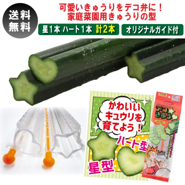 デコきゅう キュウリ 型どりケース 星 ハート お弁当 卵焼き かわいい でこきゅう 自由研究 星型1本 ハート型1本 2本セット キャラ弁 家庭菜園 使い方ガイド付き