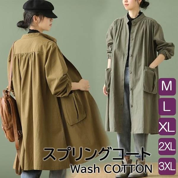 春アウター スプリングコートトレンチコートロングコート大きいサイズウォッシュコットン薄手テロンチシンプル 無地 M/L/XL/2XL/3XL