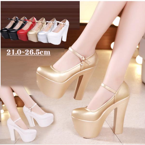 ブライダルシューズ ウェディングシューズ 結婚式 パンプス 厚底 ハイヒール 太ヒール ヒール15cm レディース キャバ嬢 エナメル アンクルストラップ 美脚