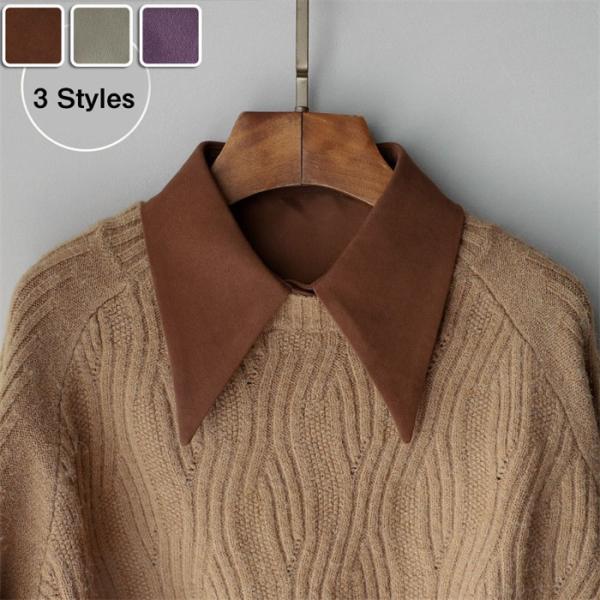 レディース つけ襟 フェイクカラー あったか 冬用 大きめ襟 トレンド コーデ シャツカラー 重ね着風 ファッション ベージュ ブラウン パープル 韓国風