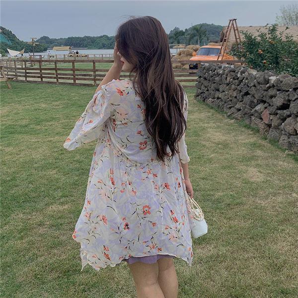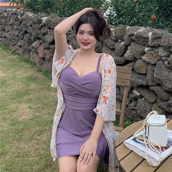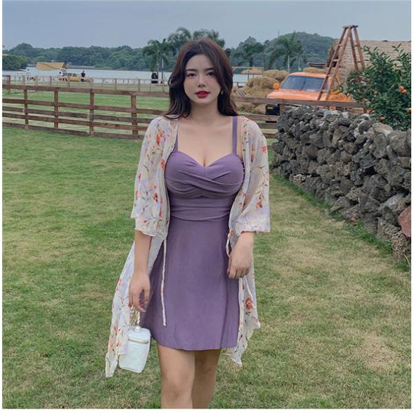 ワンピース水着 体型カバー スモック付 水着 レディース 大きいサイズ ママ水着 紫 プラスサイズ ワイヤー入り 露出控えめ 花柄 9号 11号 13号 15号 17号 19号 女性ぽっちゃり df559c0c0x2