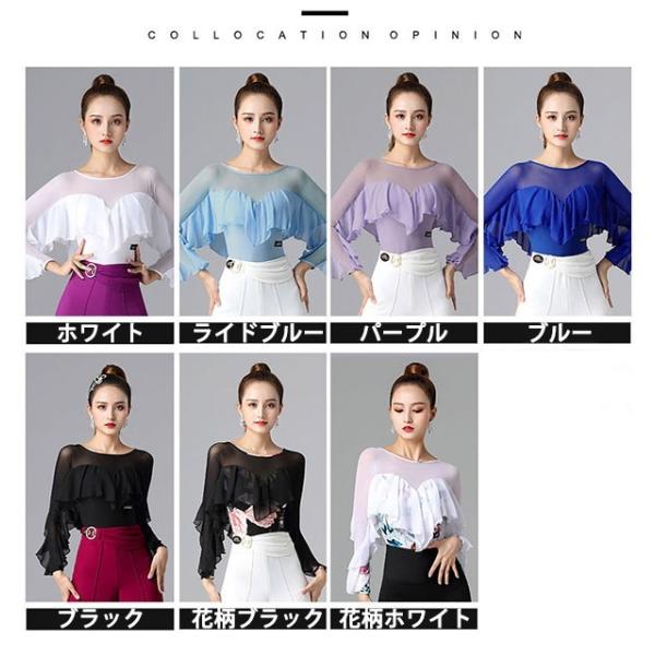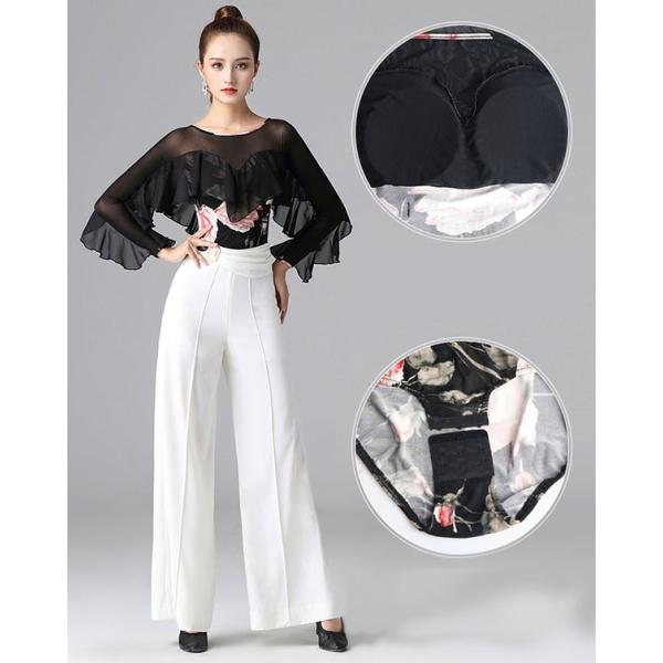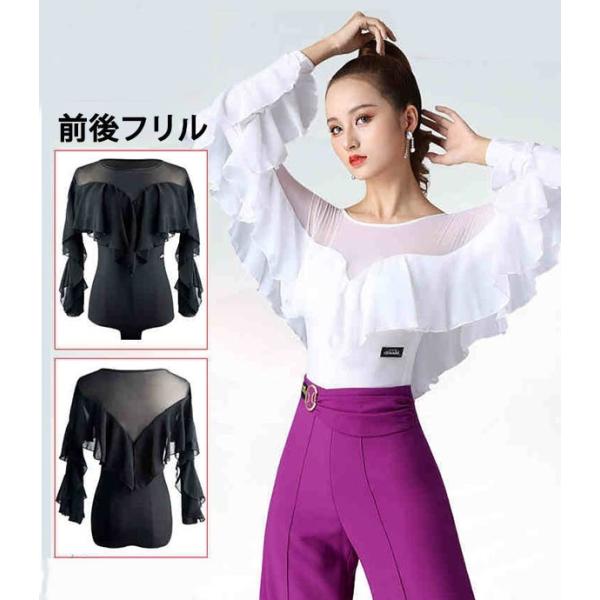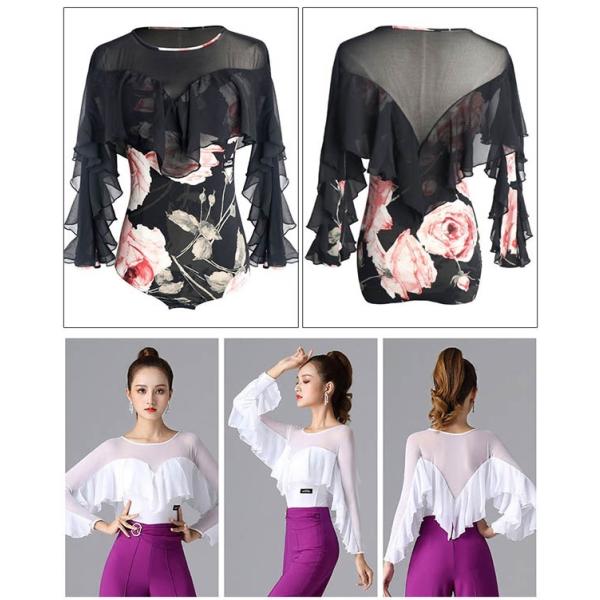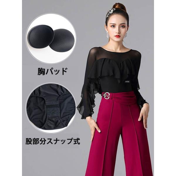 レオタード 単品 社交ダンス レッスンウェア フリル パッド付き レディース 長袖 シャツ トップス ダンスウェア 練習着 モダン スタンダード