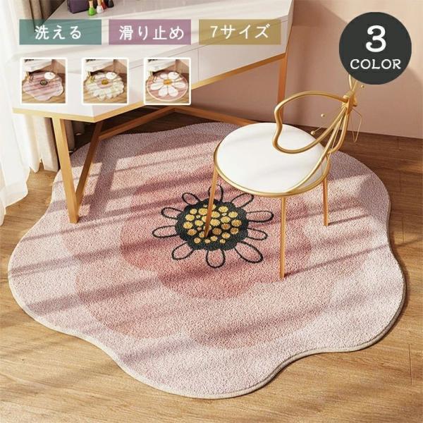 ラグ 洗える 花柄 ピンク 円形 ラグマット 滑り止め付き 不規則 丸型 厚手 かわいい カーペット リビング 子供部屋 寝室