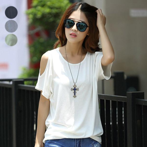 肩出しトップス レディース 半袖 Tシャツ 大きいサイズ M〜4XL カジュアル ゆったり 夏服 ブラウス 白 黒 グレー グリーン 大人可愛い