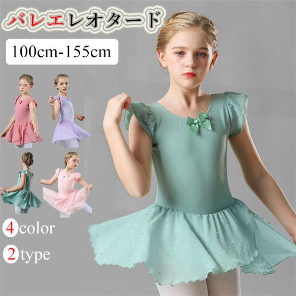 キッズレオタード バレエレオタード 子ども スカート付き 緑 紫 ピンク チュール 練習着 バレエダンス 股下スナップ