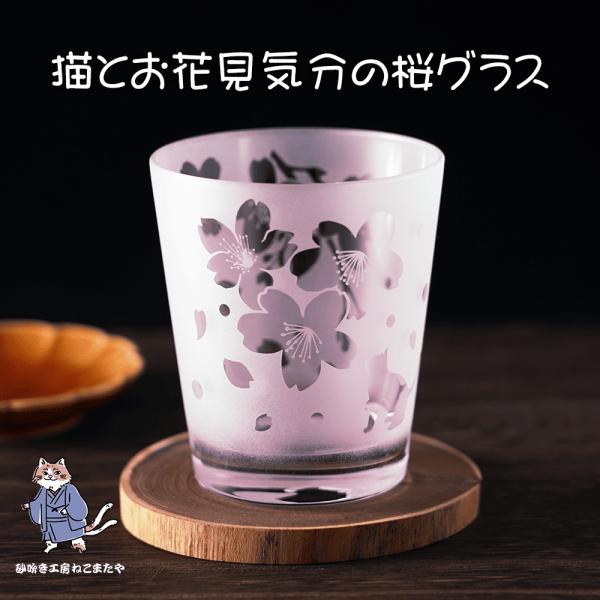 猫とお花見気分の桜グラス さくら 春 ねこ プレゼント ギフト 記念日 誕生日 母の日 父の日 クリスマス 手作り