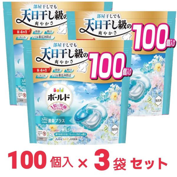 Bold ボールド 洗濯洗剤 ジェルボール 4in1 爽やかおひさまとフレッシュサボンの香り 詰め替え 100個 大容量 x3個