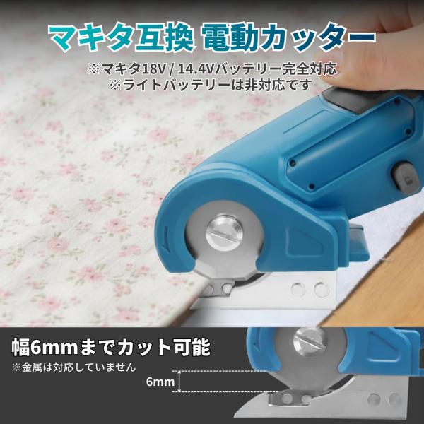 マキタ18V/14.4Vバッテリー(BL1860B/BL1850B/BL1840B/BL1830B等)に対応。