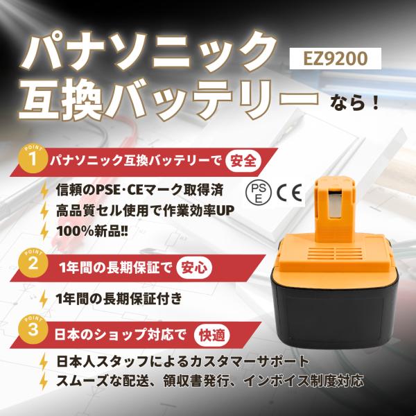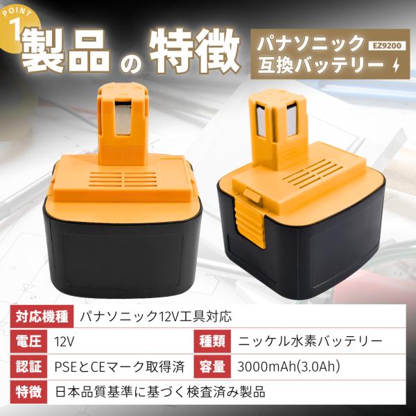 パナソニック 互換品 panasonic 互換 バッテリー EZ9200 12V 3.0Ah ezt901 EZ9200S EZ9107 EY9200 EZ9200B EY9108/S EY9201/B EY9001 (EZ9200/2個)
