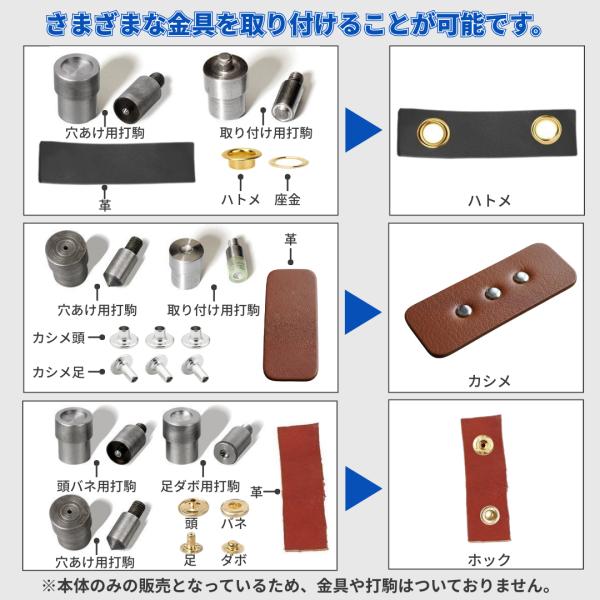 ハンドプレス機 卓上 カシメ機 レザー クラフト 駒 コマ グロメット プレス 穴あけパンチ リベット 目打ち ハトメ機 穴あけ機 革細工 ※コマ 別売(HNP01-BL)