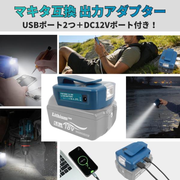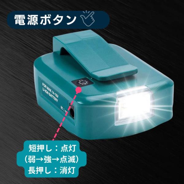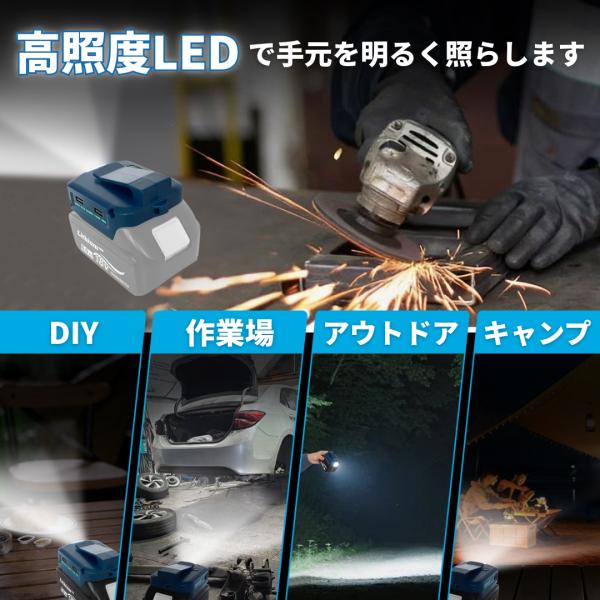 マキタ互換品 ADP05 LEDライト付き USB アダプター 明るさ140ルーメン 18V 14.4V対応 2.1A 防災対策 作業灯 ※バッテリー別売り (ADP05L01-BL)