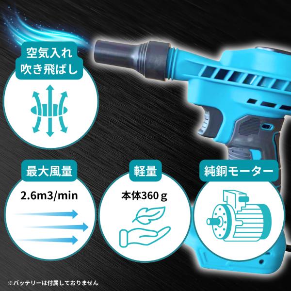マキタ 互換品 充電式 エアダスター 電動 コードレス ブロワー 掃除 空気入れ 小型 18V 14.4V バッテリー対応 ロングセーフ 本体のみ (MAD02-BL)