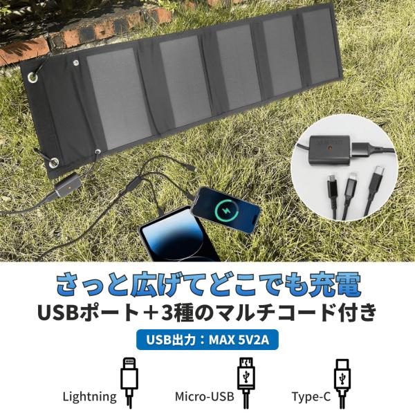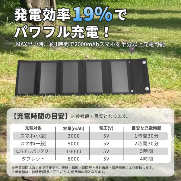 ※iPadまたはタブレットのようなワット数が大きい製品を充電する場合、天候に左右されます。