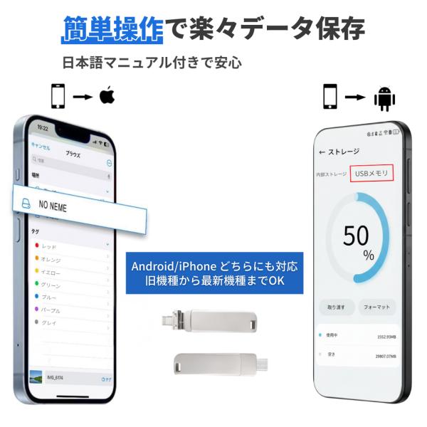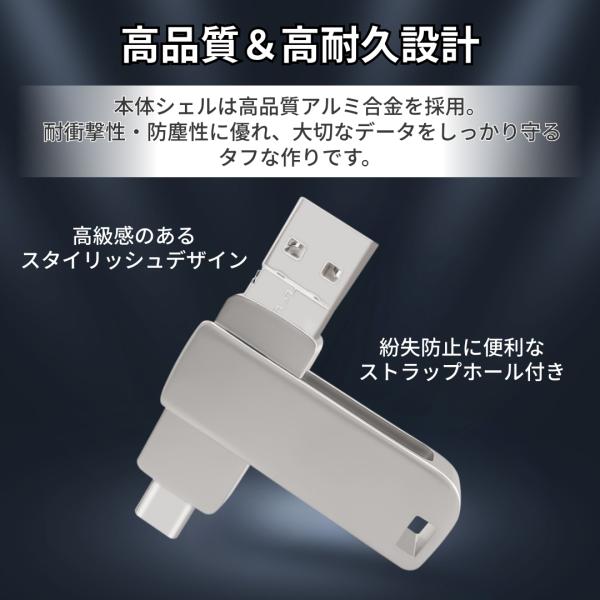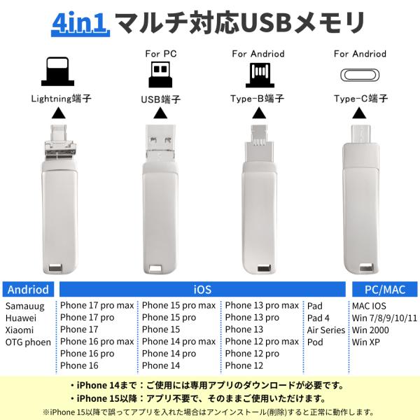 USBメモリ 256GB 4in1 USB3.0対応 iPhone Android タブレット PC 外付け フラッシュメモリ スマホ Type-C Lightning USB micro 小型 ポータブル (USBM256)