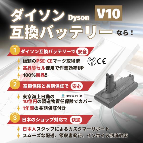ダイソンV10交換用バッテリ-、高品質,ダイソンV10掃除機交換用バッテリー ダイソン V10 Fluff / Fluffy+ / Absolute / Absolute Extra / Animalpro / Motorhead PSE登録