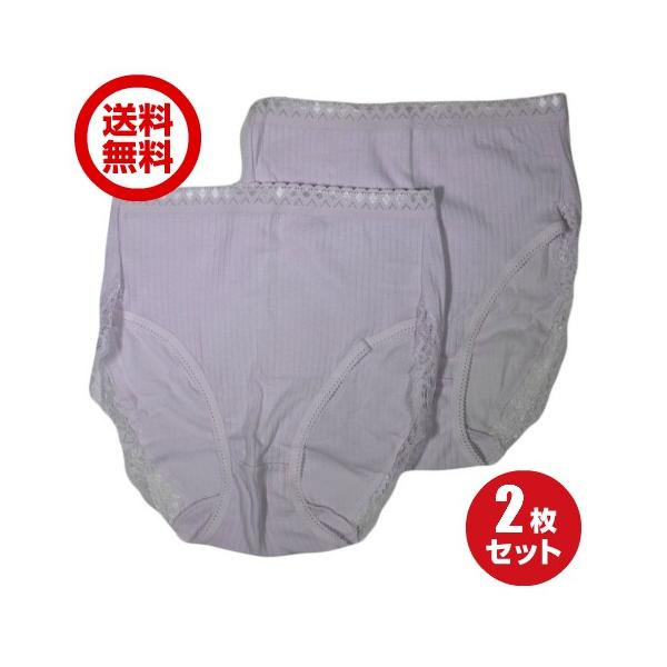 送料無料お試し商品 リブ編み無地 バックレース ゆったり丈長ショーツ 綿100% 2枚セット 大きなサイズ 3L 4L 5L