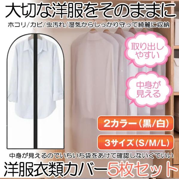 洋服カバー 5枚組 ホワイト ブラック 3サイズ スーツサイズ 衣類
