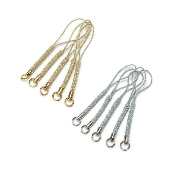 メール便 根付 根付け 根付け紐 ストラップ 金具 5本 ゴールド シルバー 紐 金色 銀色 丸カン付き アクセサリー金具 根付ストラップ ストラップパーツ 爆買