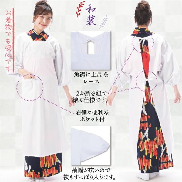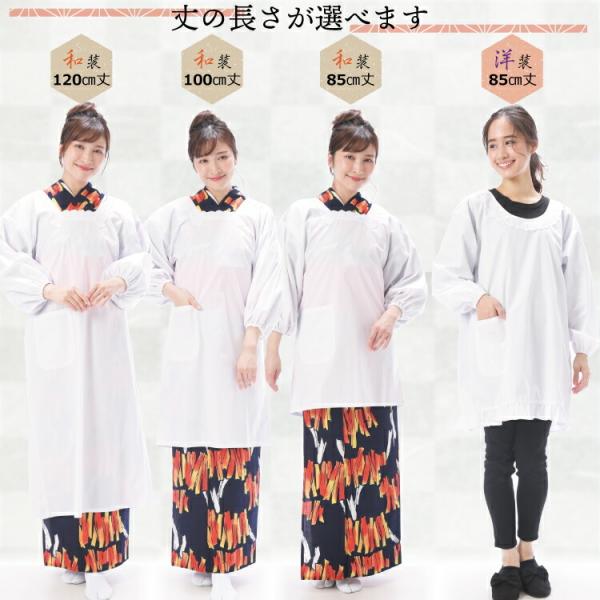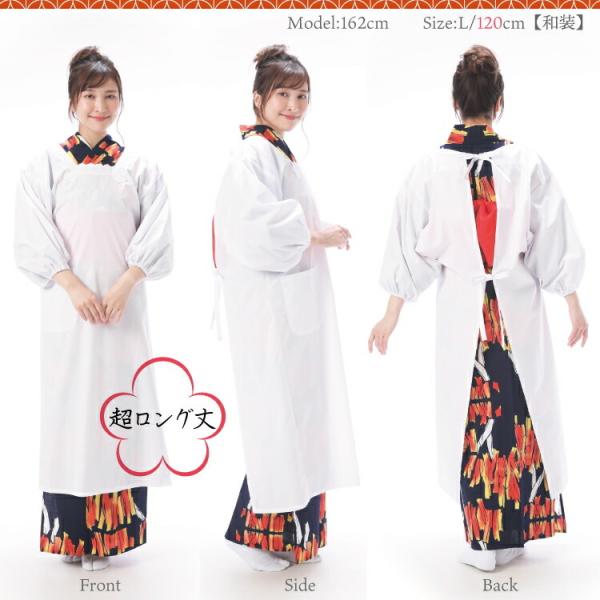 割烹着 白 かっぽう着 和装用 洋装用 ロング丈 選べる丈 着物
