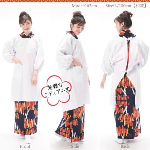 割烹着 白 かっぽう着 和装用 洋装用 ロング丈 選べる丈 着物 きもの 和服 無地 エプロン フォーマル おしゃれ 給食 家事 M Lx10-white-kappo