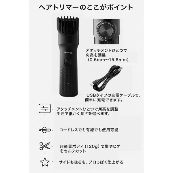 【アタッチメント迷子に、もうさせない】ヘアトリマー バリカン ヒゲトリマー 充電式 交流式 コードレス対応 軽量 USB-C アタッチメント不要 刈高調整15段階 0.5