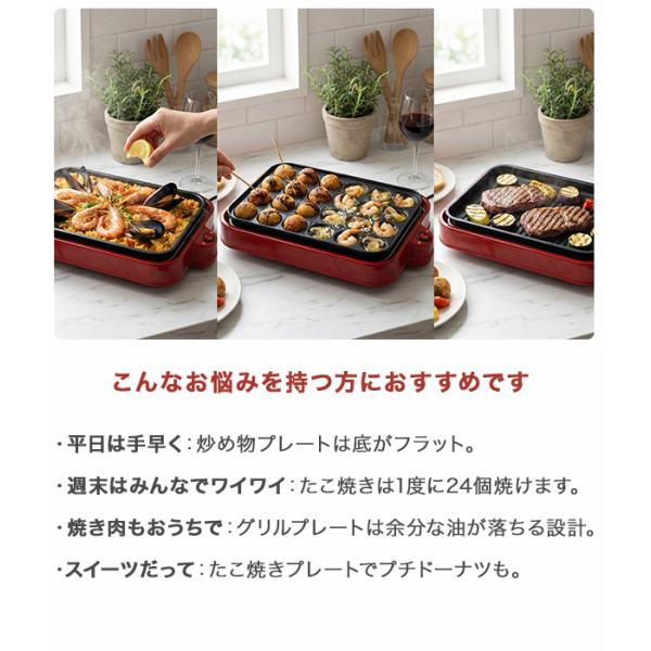 3WAYホットプレートRM-243TE-RD 3枚プレートでメニューを切り替えるホットプレート