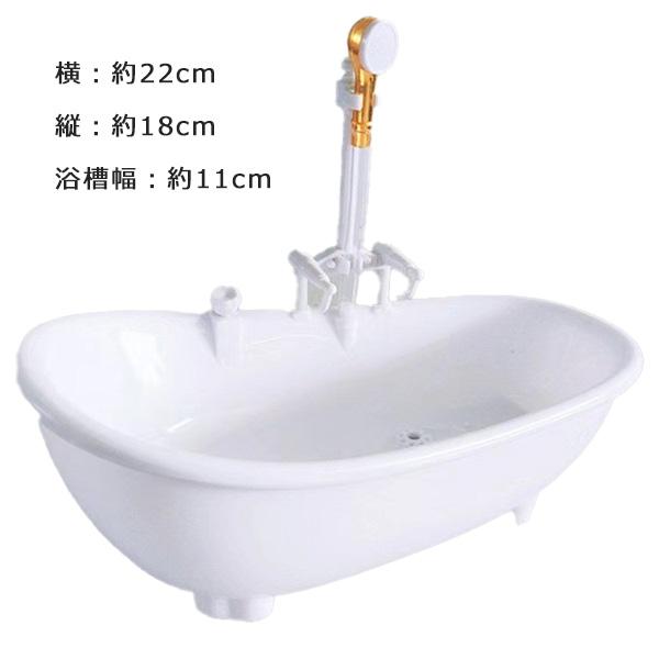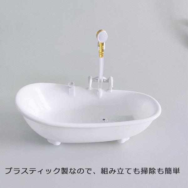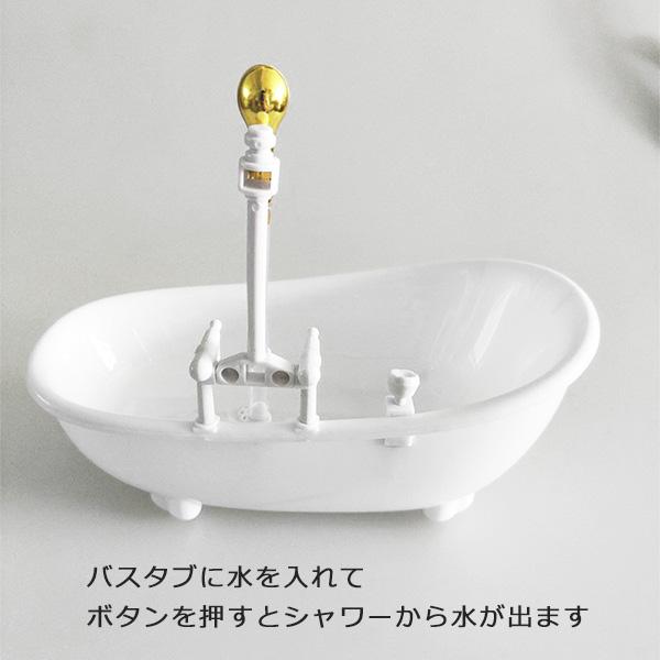 ・バスタブに水を入れてボタンを押すとシャワーから水が出ます。