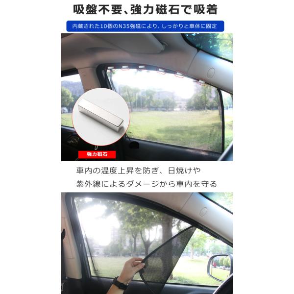 マグネットカーテン 2枚セット 車 サンシェード カーテン マグネット UVカット 暑さ対策 紫外線対策 メッシュ サイド 簡単 後部座席 窓 シート 車内 日よけ 赤ち