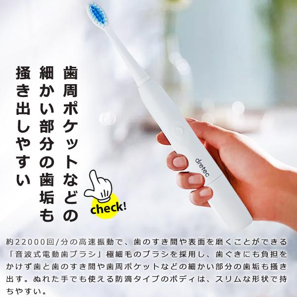 電動歯ブラシ 音波式 ポータブル 毎分22000回 音波振動 微細毛 山切り型ブラシ スリム形状 IPX4 防滴タイプ 軽量設計 電池式 オーラルケア TB-314