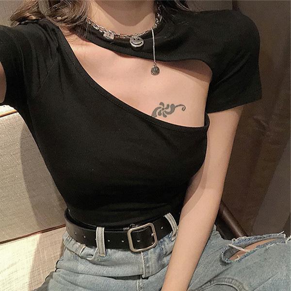 胸元オープン 半袖 トップス バストカット 胸あき Tシャツ
