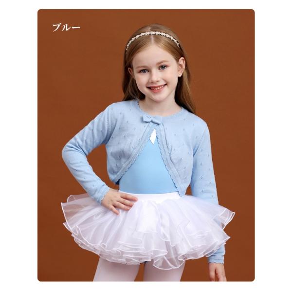 ※ご注意:詳しいサイズや注意点については、【商品情報・詳細】を必ずご確認ください。 ボレロ 子供 キッズ バレエ 女の子 長袖 トップス ニット ダンス バレエトップス レッスン 防寒 温か 寒さ対策 練習着 こども用 ブルー 紫 ピンク バレエ用品 ベビー服 カーディガン かわいい リボン