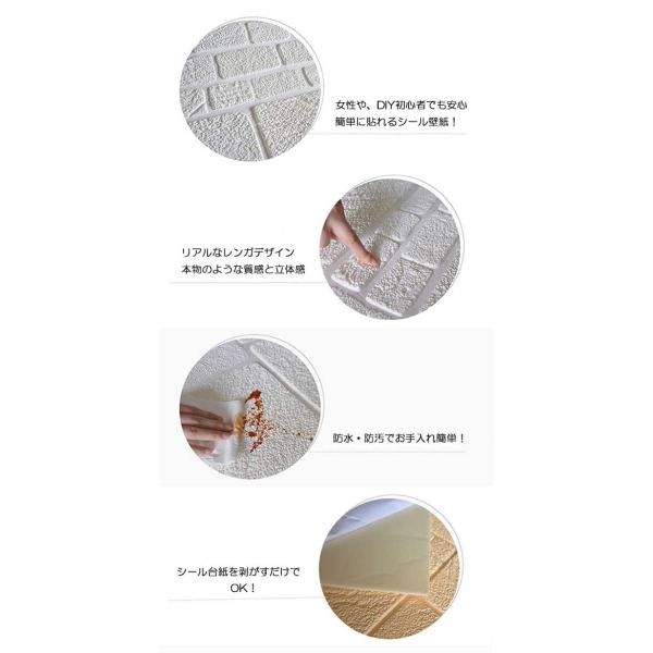 壁紙 クッションブリック 5枚組 70×70cm 立体 DIY おしゃれ 大判 レンガ調 リメイクシート リ 寝室 貼る 壁紙シール 模様替え