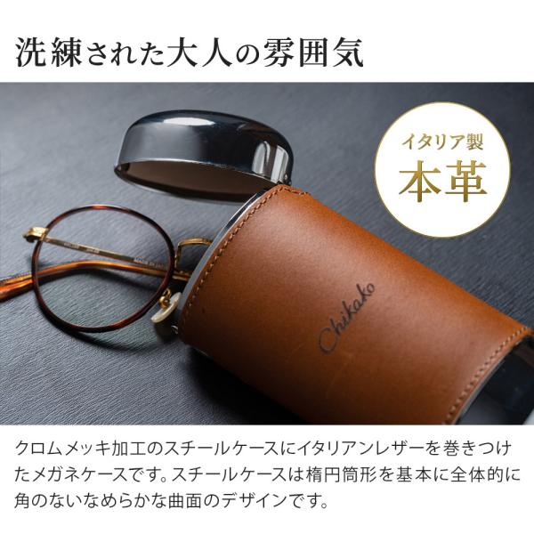 クロムメッキ加工のスチールケースにイタリアンレザーを巻きつけたメガネケースです。