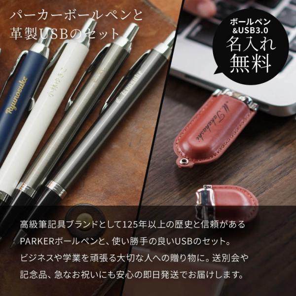 名入れ パーカー IM ボールペン & 革 USBメモリ 32GB セット 名入れ無料 PARKER アイエム 高級 名前入り お祝い プレゼント ギフトセット 男性 メンズ 卒業 卒業記念品 入学 入社 就職 祝い お祝い 記念品 誕生日 退職 創立記念品 ギフト 名入れ無料 ボールペン 1本から