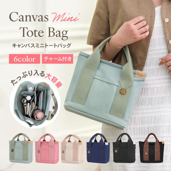 トートバッグ 小さめ ミニ キャンバス レディース おしゃれ マチ 収納 ポケット 軽い 通勤 通学 ブラック かわいい シンプル カジュアル ファスナー 無地