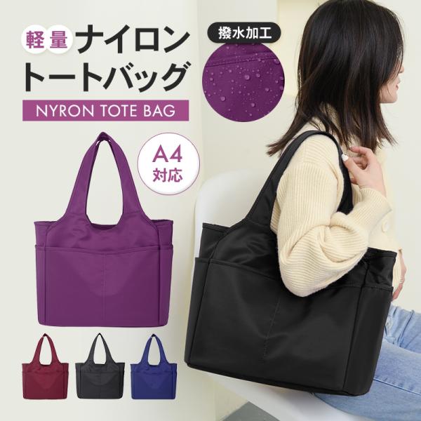 トートバッグ レディース おしゃれ かばん 大容量 収納 ポケット 通勤 軽い a4 ブラック 通学 シンプル 肩掛け カジュアル ファスナー 大きめ 無地 ナイロン